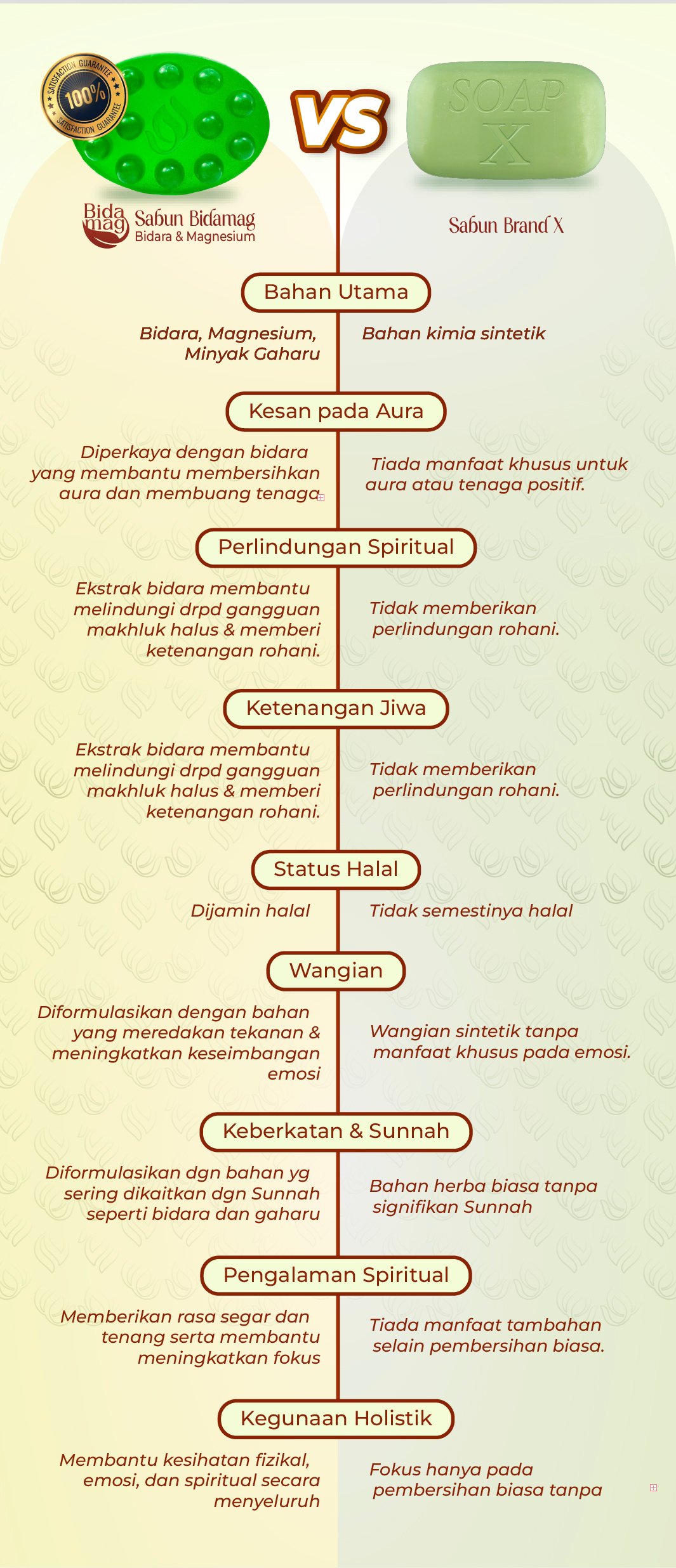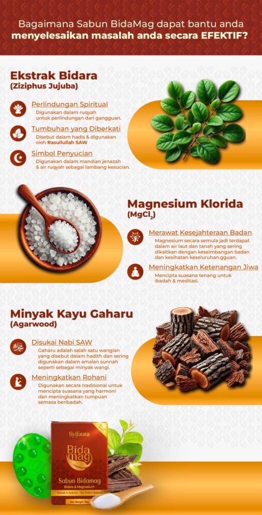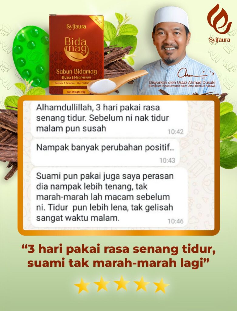 Ia bukan sekadar sabun, tetapi solusi lengkap untuk ketenangan jiwa, perlindungan aura, dan tidur berkualiti, dengan bahan yang terbukti berkesan secara saintifik dan dalam amalan sunnah.